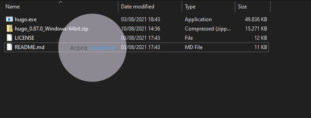 Langkah selanjutnya adalah dengan ekstrak file hugo tersebut, kemudian akan tampil file seperti di bawah ini :