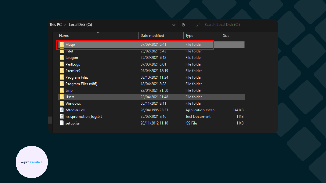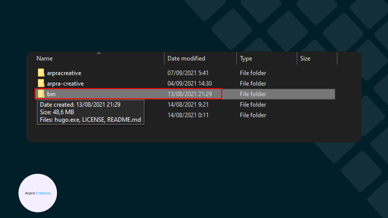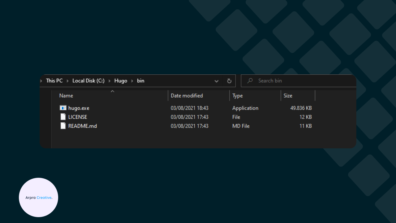 3. Membuat folder C:\hugo\bin\