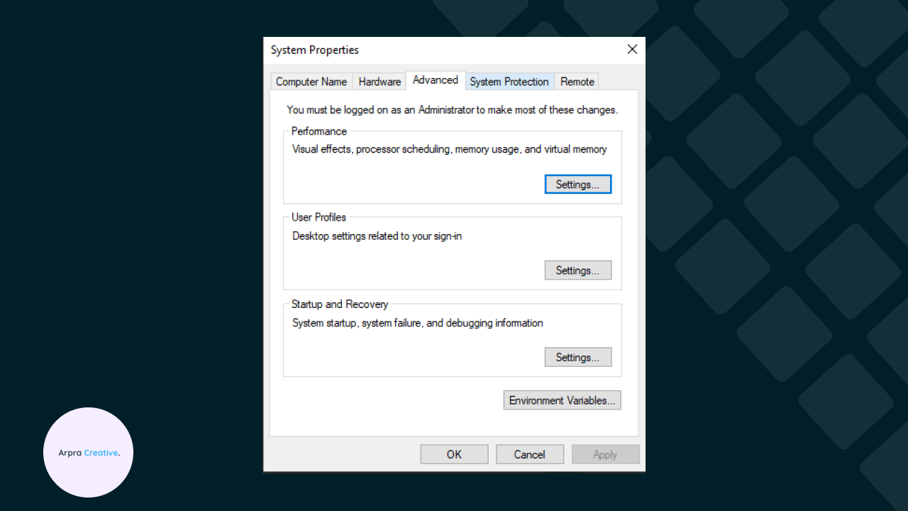 Kemudian buka Environment Variables, maka akan menampilkan tampilan seperti berikut :
